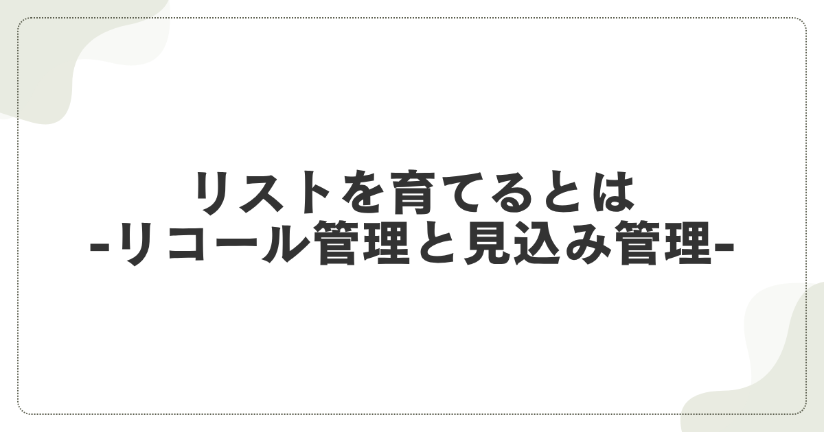 リストを育てるとは -リコール管理と見込み管理-